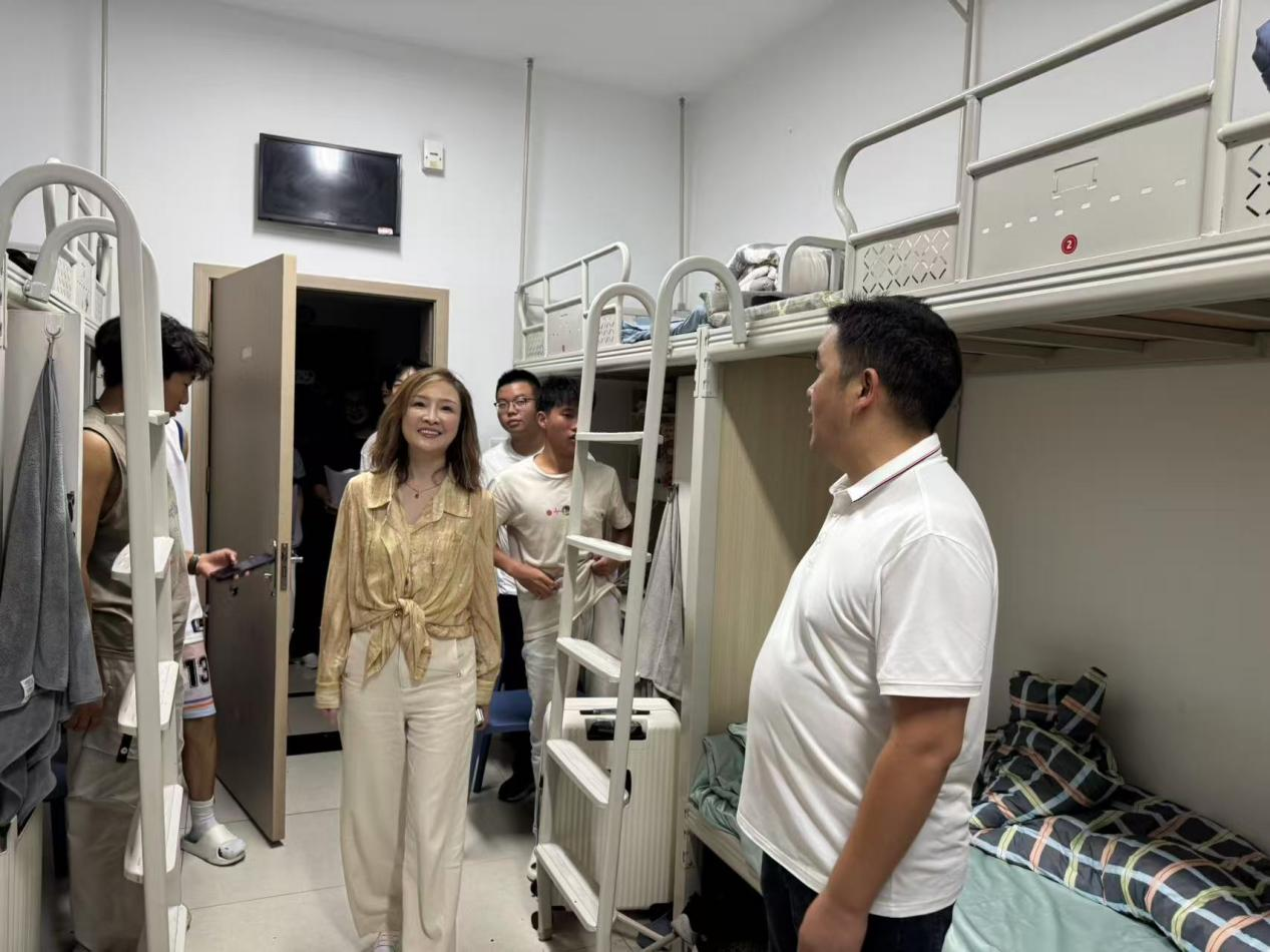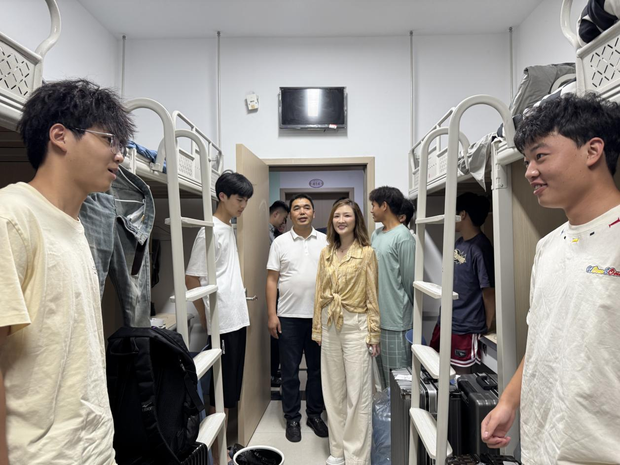在走访过程中,巫英杰经理细致询问了新生的入学适应情况,耐心了解同学们的生活需求,鼓励大家尽快适应大学环境,做好学业规划。她特别叮嘱同学们要互相关心、互相帮助,共同营造良好的宿舍氛围。